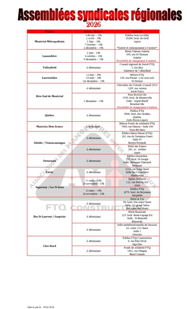 Assemblées syndicales régionales